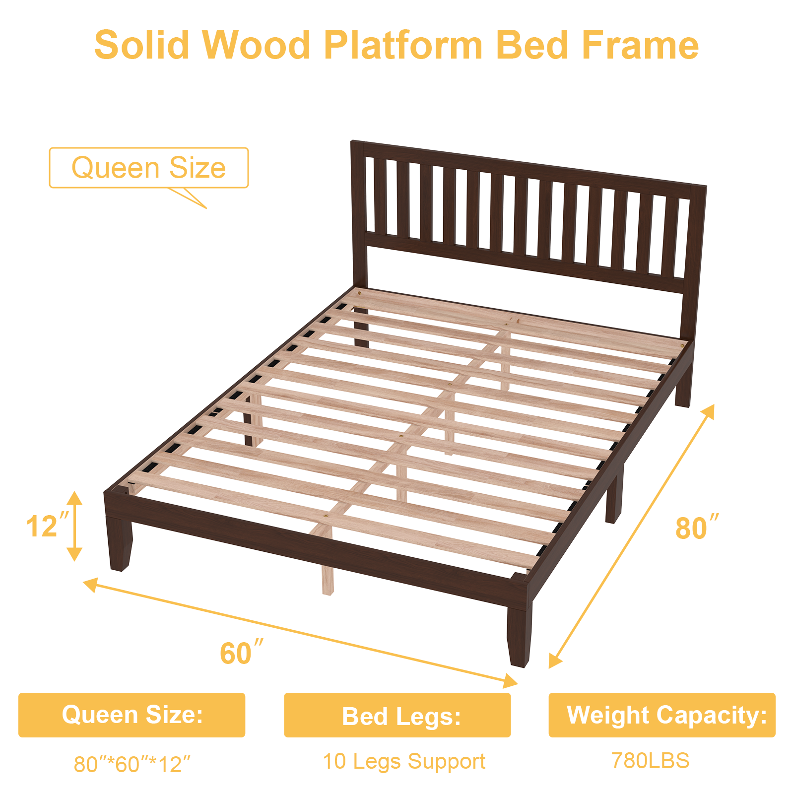 - 【Wooden Bed Frames】Queen size wooden Platforms bed, made of sturdy wood, is very practical with strong structure and high weight capacity.